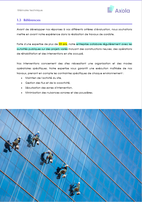 Notre mémoire technique est pré-rédigé par des experts en cordiste et déjà structuré selon les attentes des acheteurs publics.