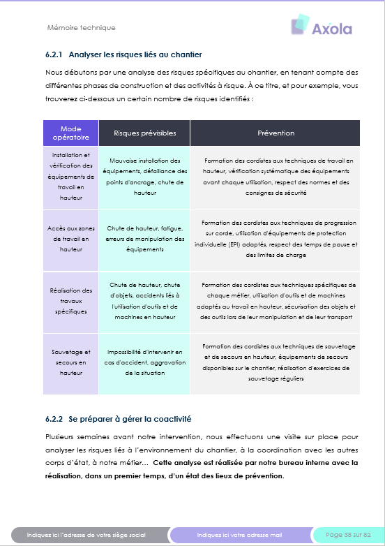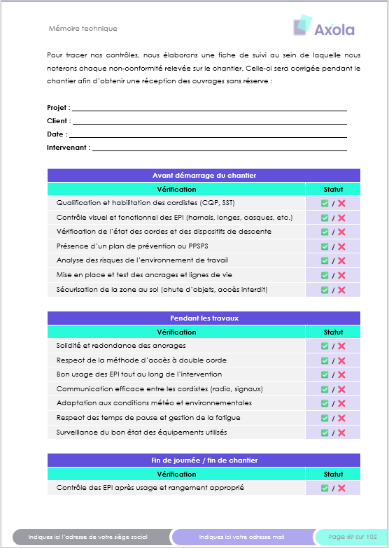 Mémoire technique cordiste Modèle 100% personnalisable pour les entreprises Belges