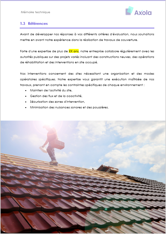 Notre mémoire technique est pré-rédigé par des experts en couverture et déjà structuré selon les attentes des acheteurs publics.