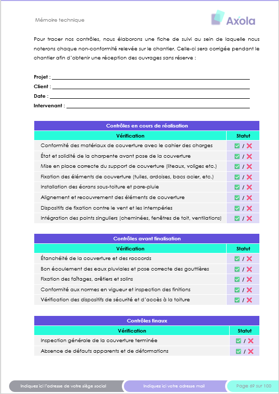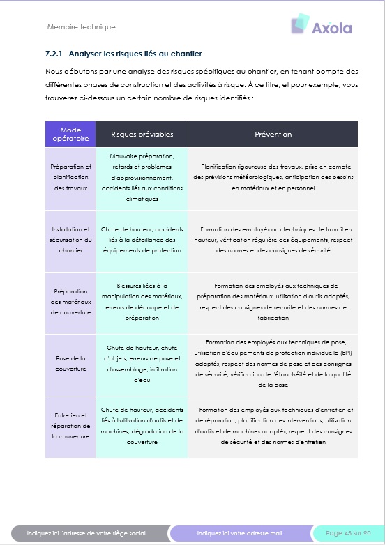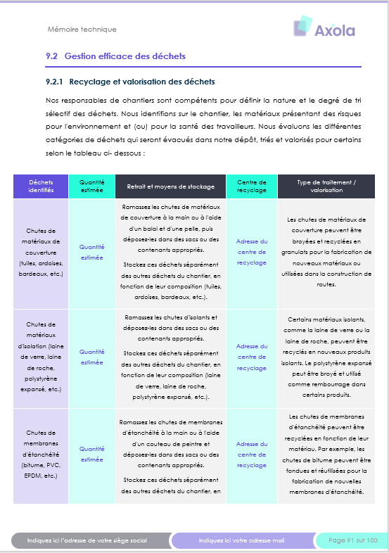 Notre document pré-rédigé par des experts en couverture vous permet de soumettre une offre technique qui répond précisément aux critères d’évaluation des acheteurs publics francophones (Belgique, France, Luxembourg, Suisse..)
