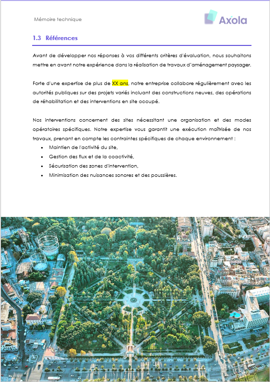 Notre mémoire technique est pré-rédigé par des experts en espaces verts et déjà structuré selon les attentes des acheteurs publics.