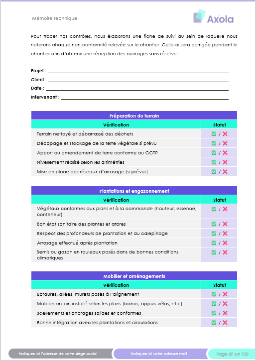 Mémoire technique espaces verts Modèle 100% personnalisable pour les entreprises Belges