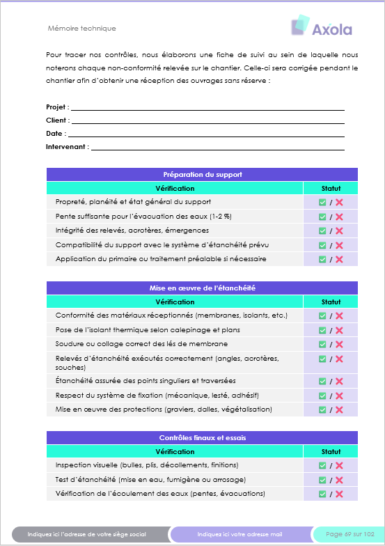 Mémoire technique étanchéité Modèle 100% personnalisable pour les entreprises Belges