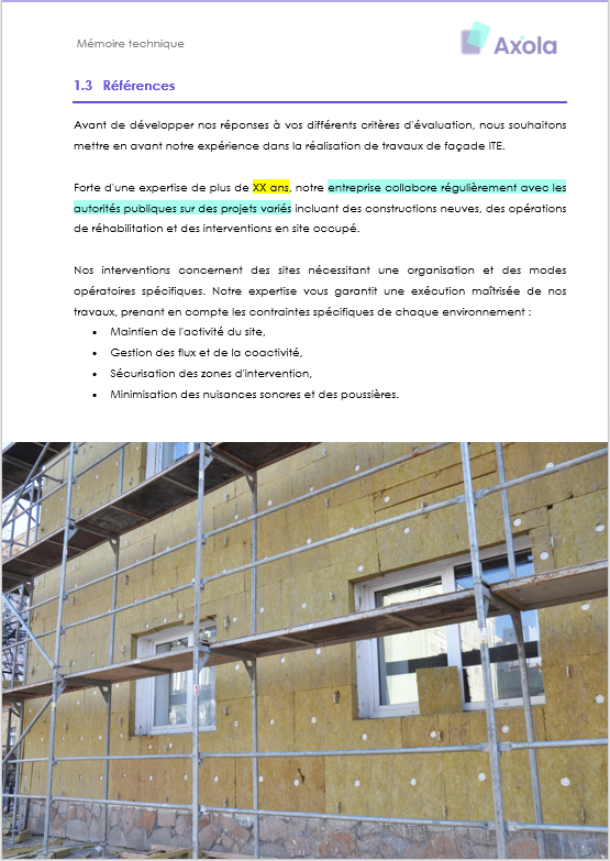 Notre mémoire technique est pré-rédigé par des experts en façade ITE et déjà structuré selon les attentes des acheteurs publics.