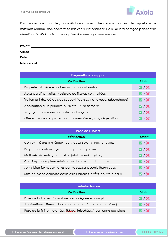Mémoire technique façade ITE Modèle 100% personnalisable pour les entreprises Belges