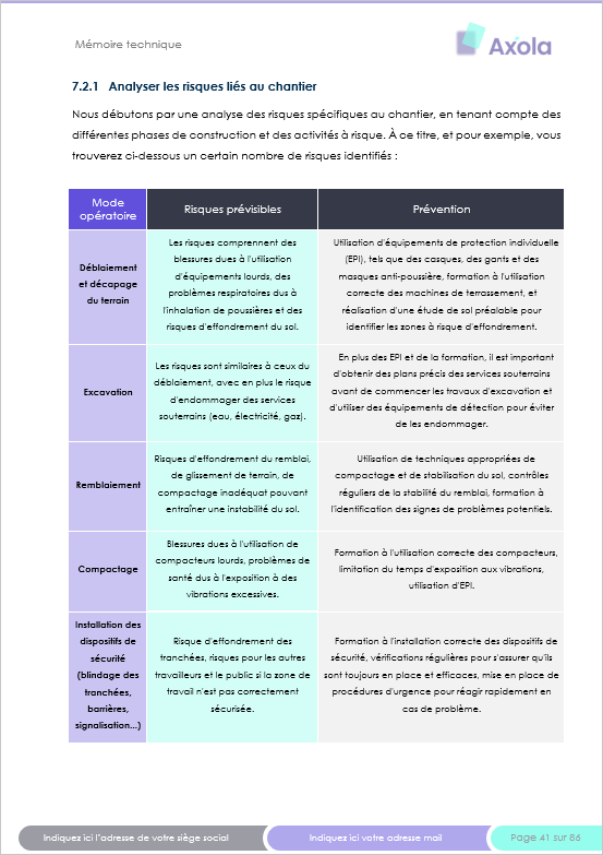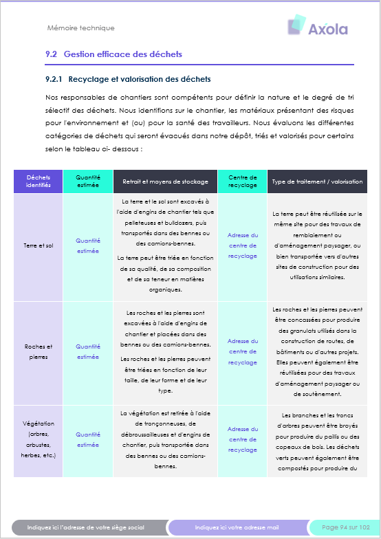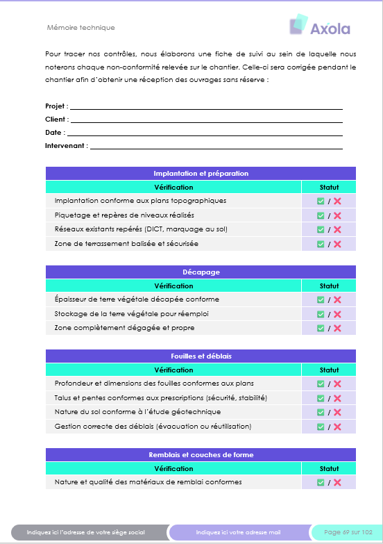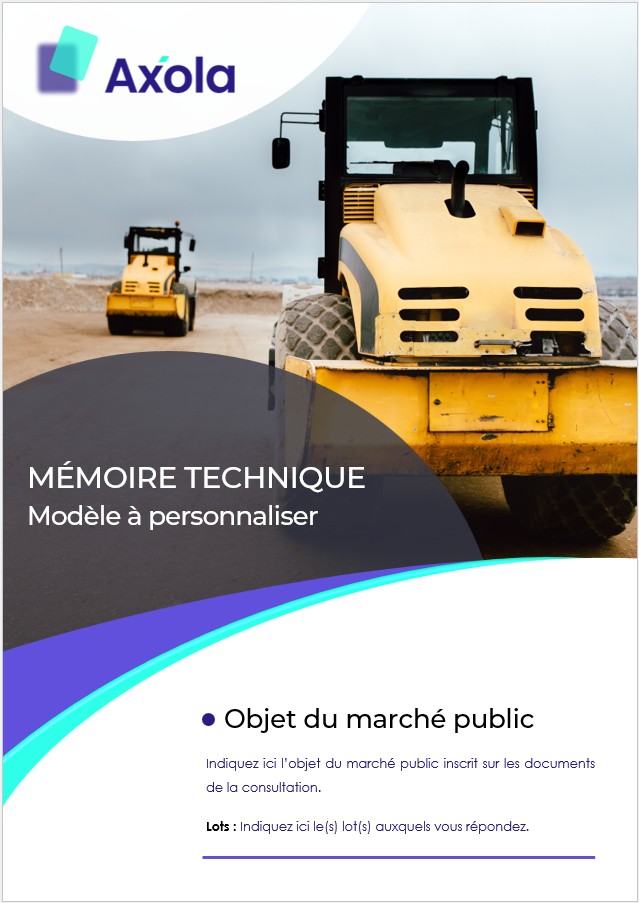 Notre document pré-rédigé par des experts en terrassement vous permet de soumettre une offre technique qui répond précisément aux critères d’évaluation des acheteurs publics francophones (Belgique, France, Luxembourg, Suisse..)